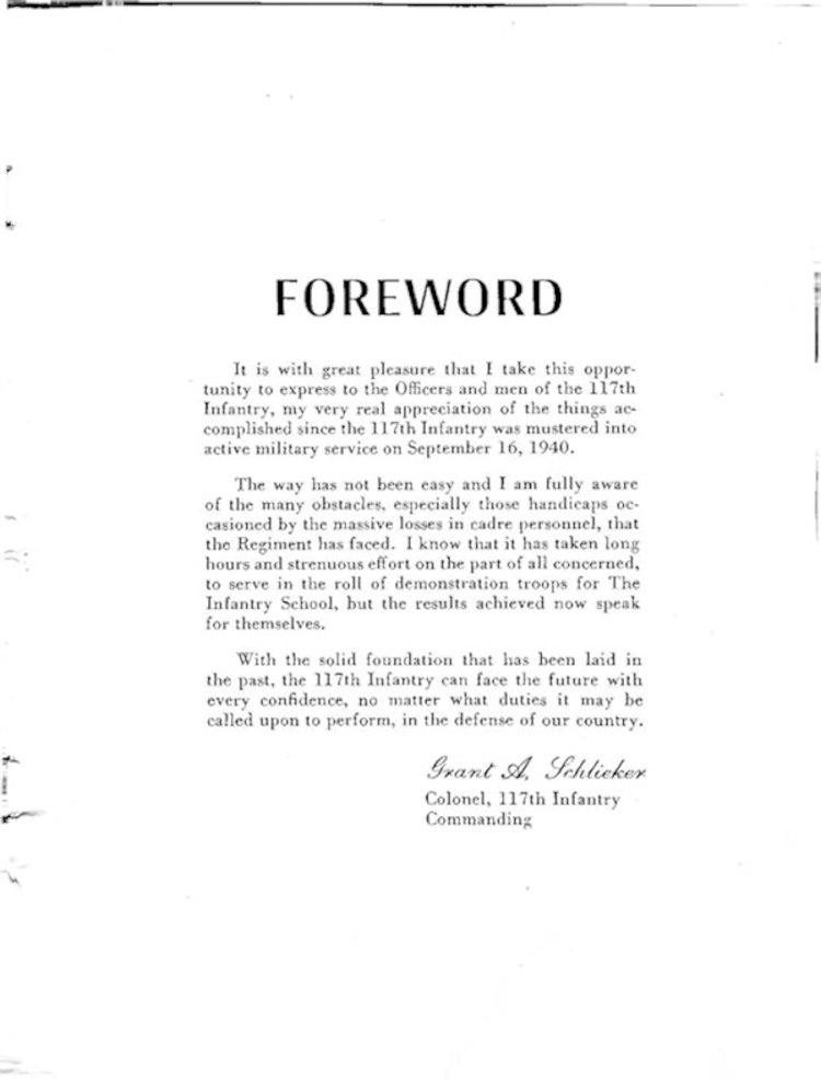 Special thanks to Ryan Lord of Chicago, Illinois, for submitting this yearbook on the 177th Infantry Regiment  training at Fort Benning, Georgia. We are still looking for other yearbooks for the 117th Infantry Regiment during the World War II era.