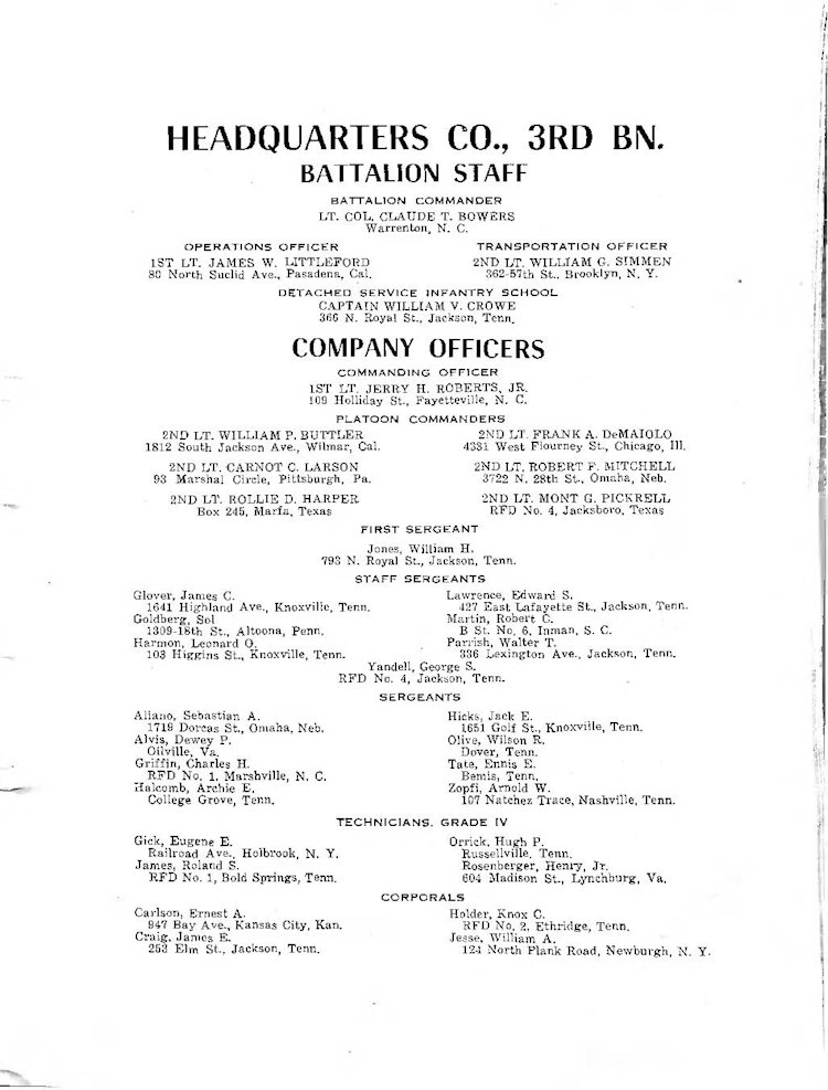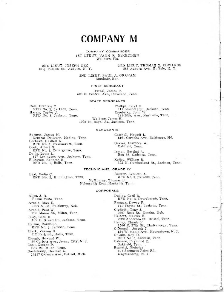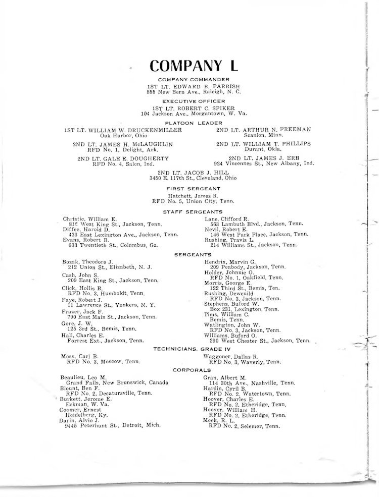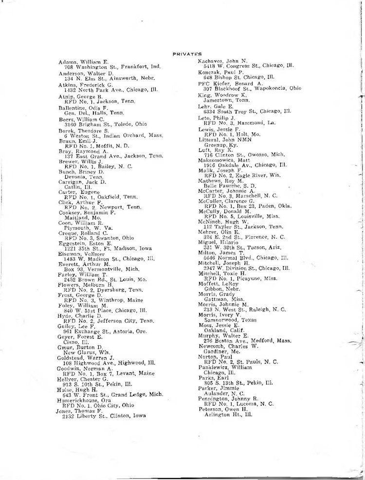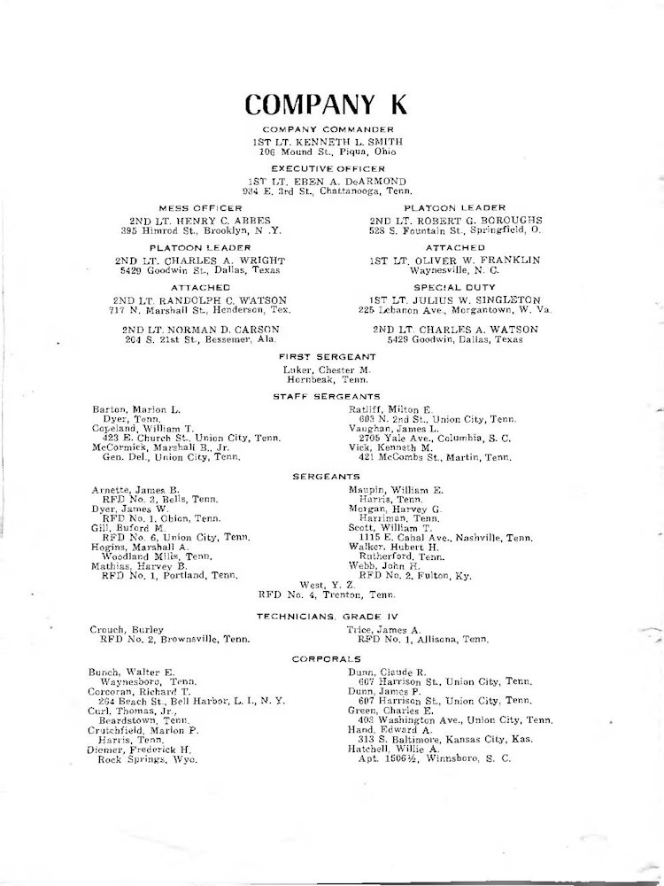 K Company Roster - 117th Infantry Regiment - June 1944 - August 1945