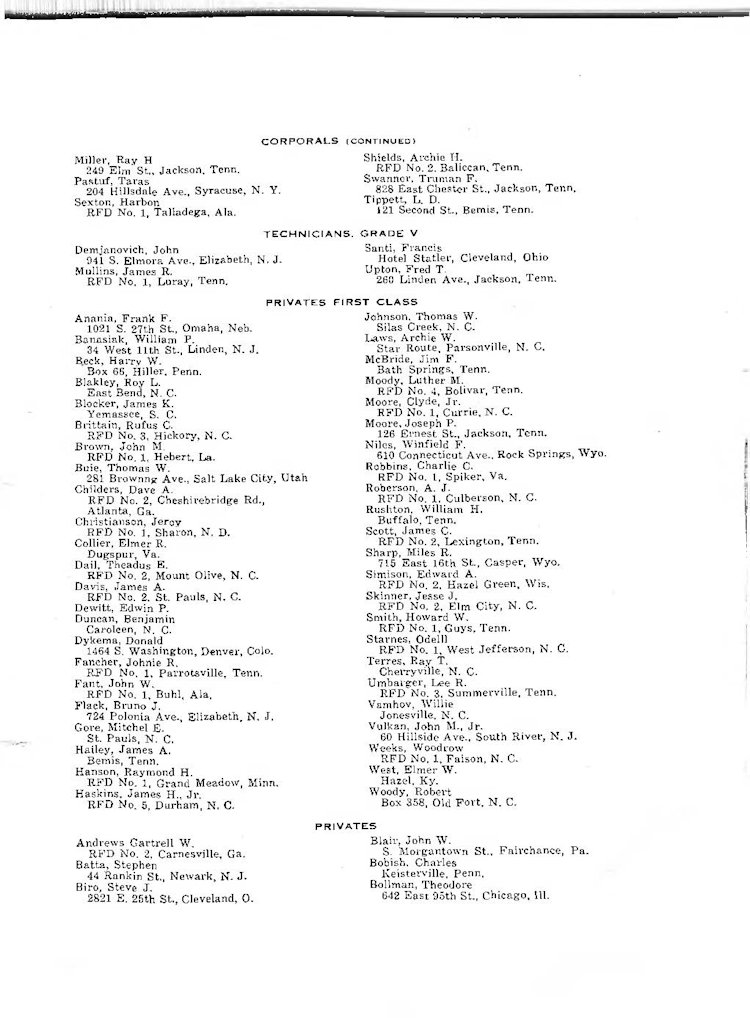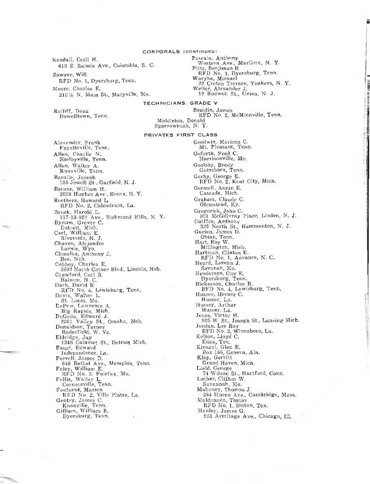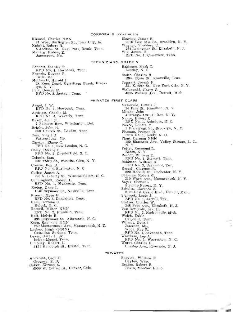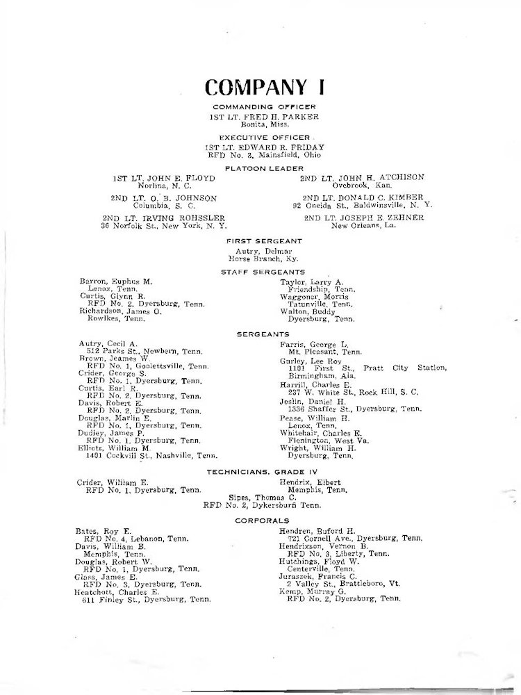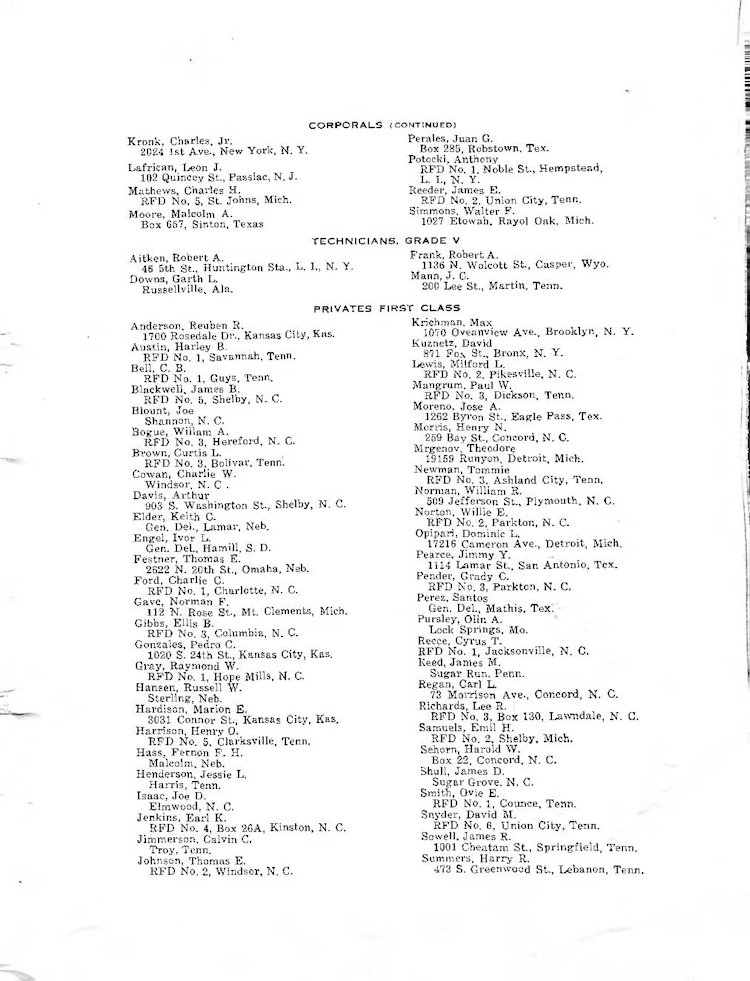K Company Roster - 117th Infantry Regiment - June 1944 - August 1945