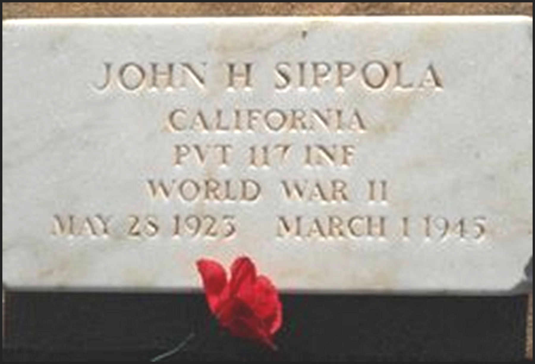 Private John Sippola's grave marker in Rocklin, California.