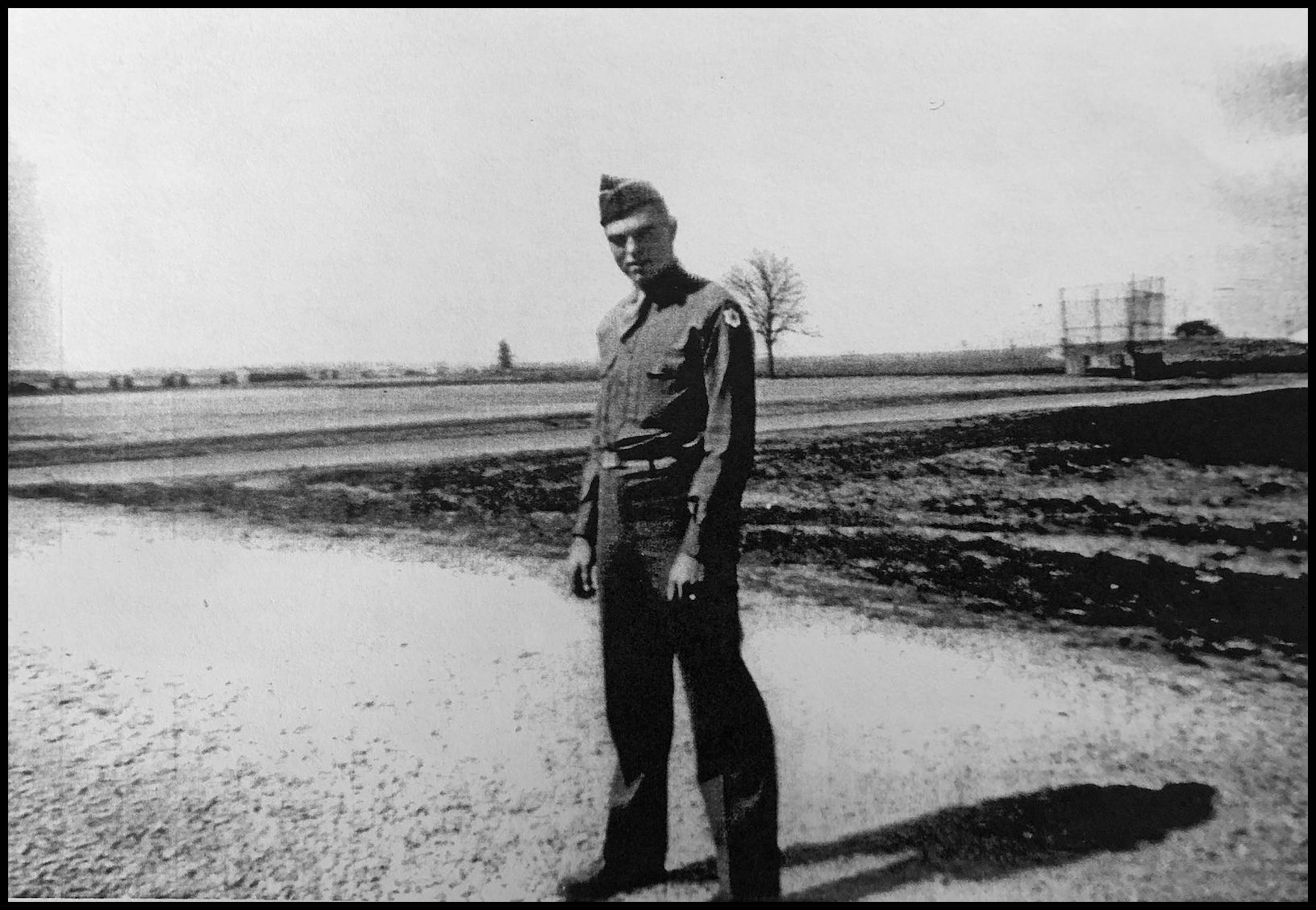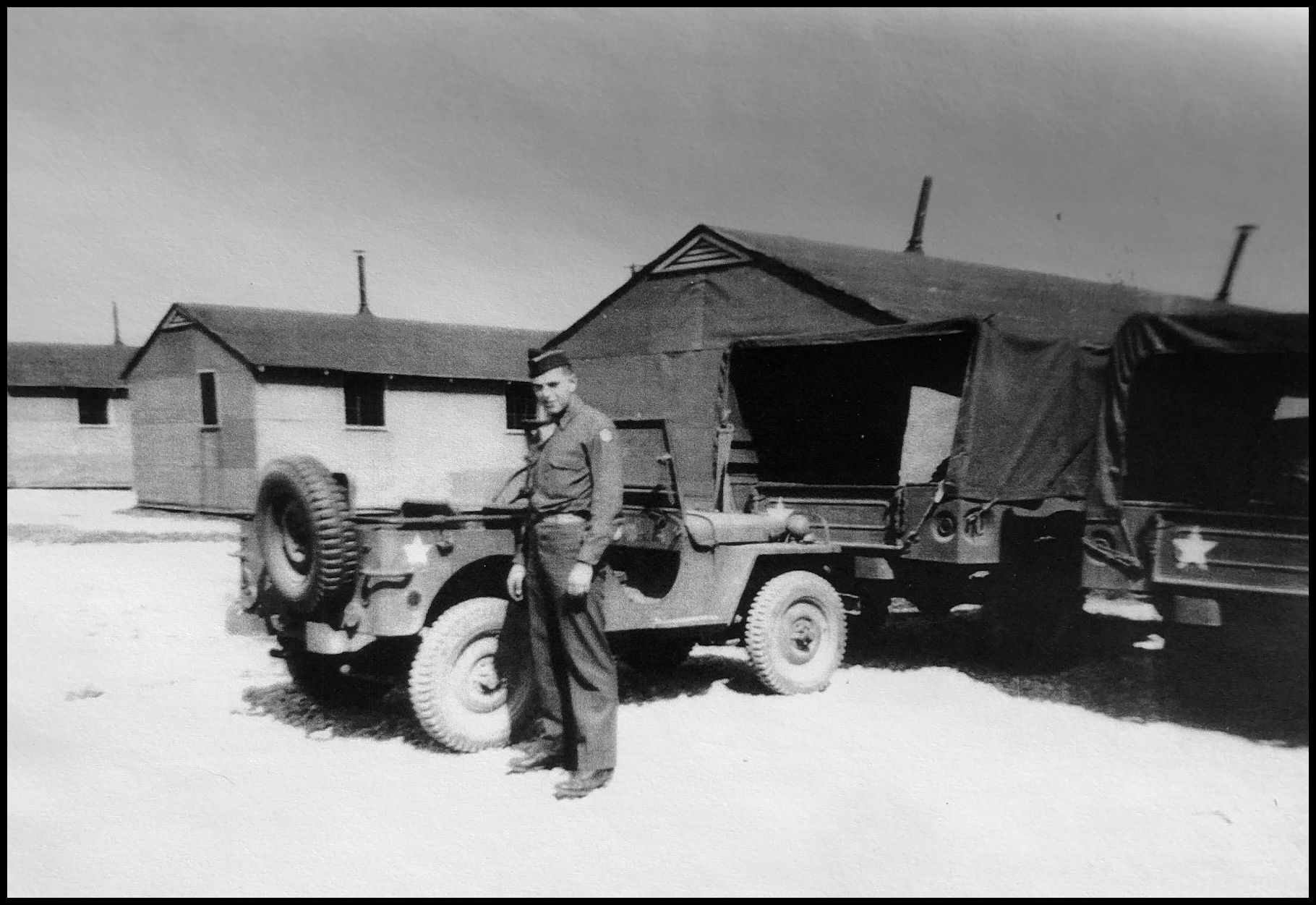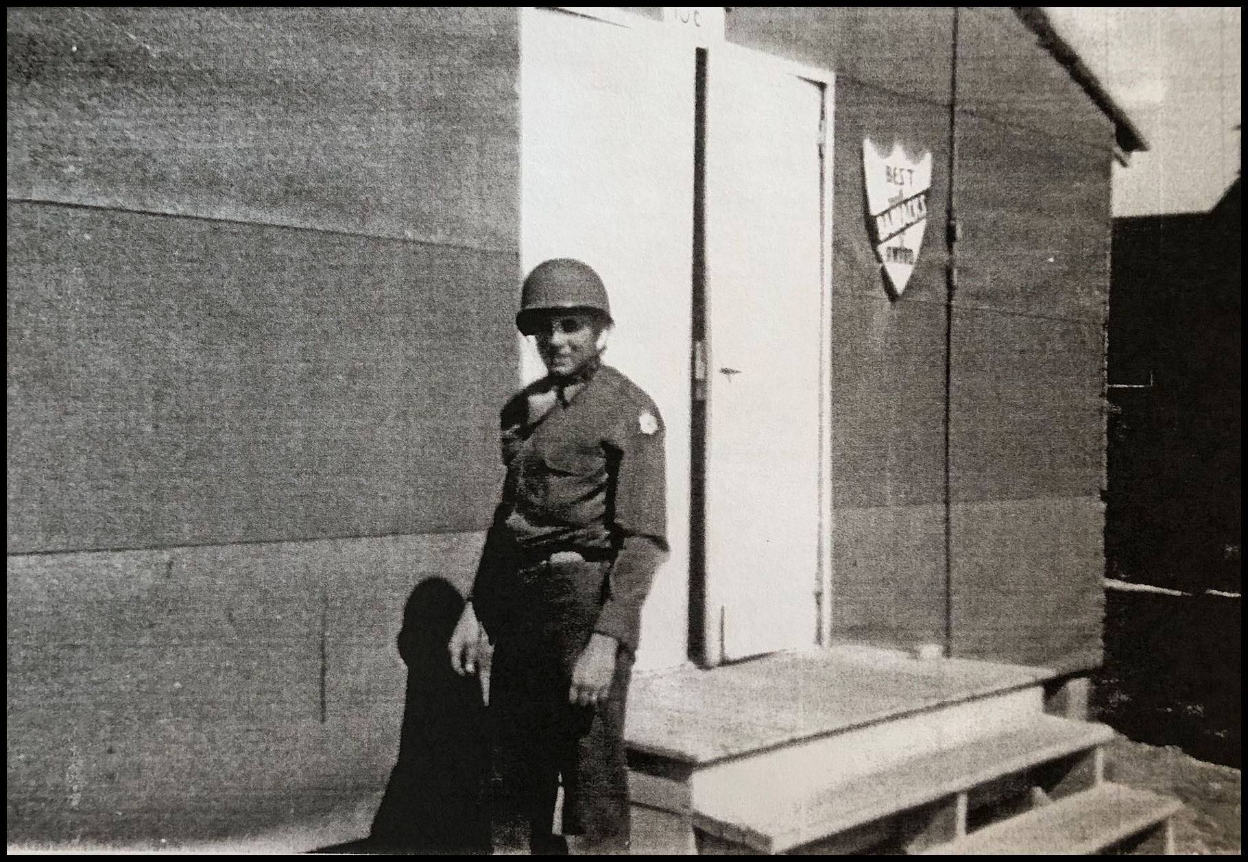 John Sippola near his barracks at Camp Atterbury, Indiana, in 1943.