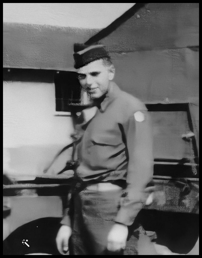 Close-up of John Sippola at Camp Atterbury in 1943.