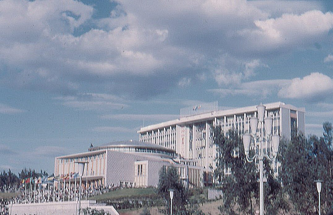 Africa Hall on the Day of Queen Elizabeth's Visit to Addis Ababa, Ethiopia, February 1965