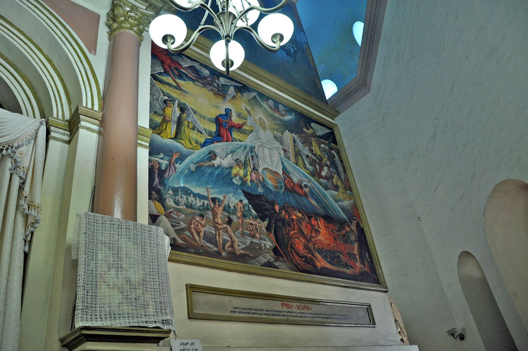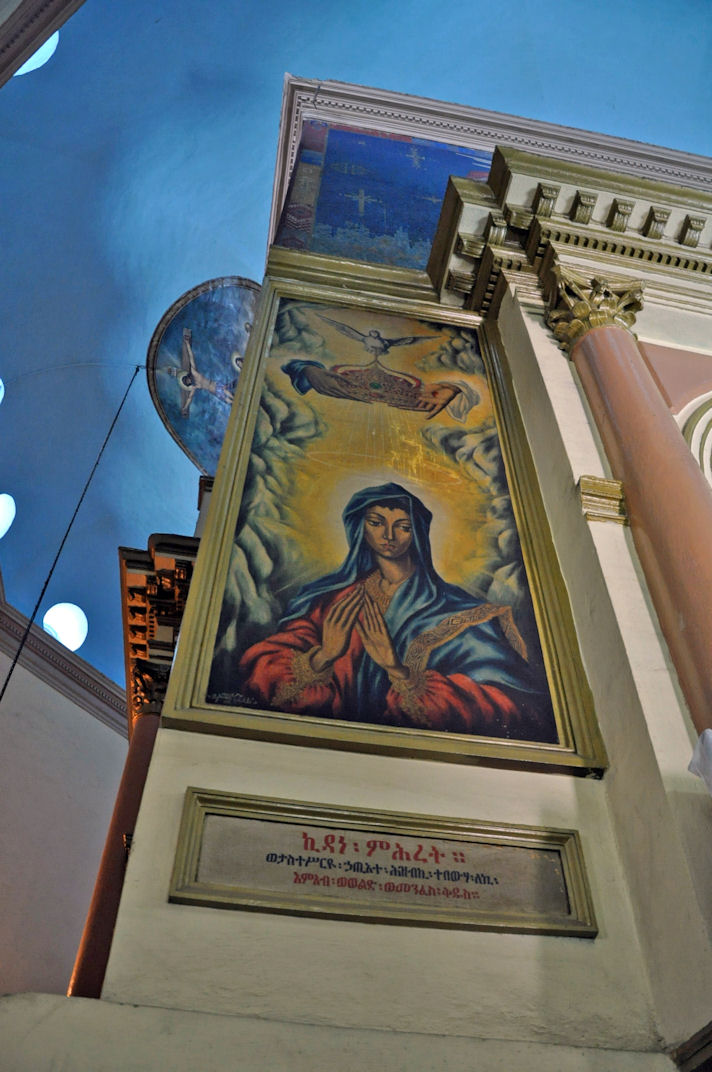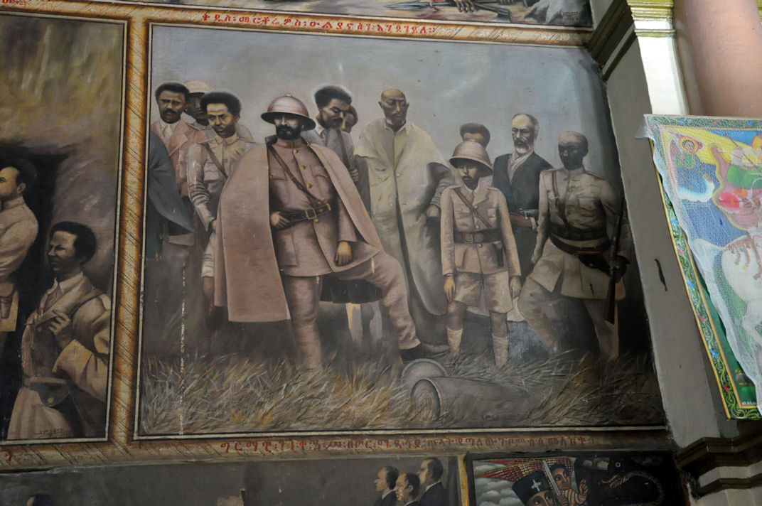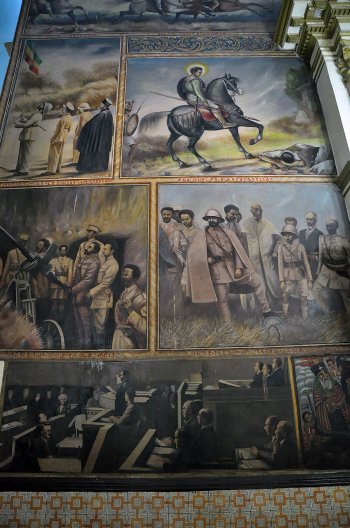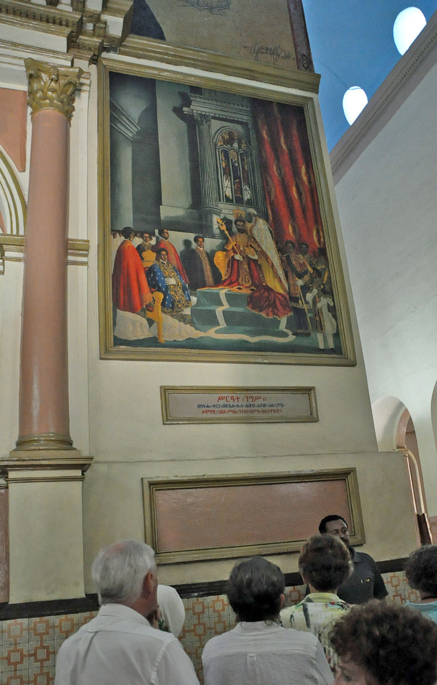 Empress Zewditu of Ethiopia was crowned at this Cathedral in 1917, and Emperor Haile Selassie was crowned there in 1930, and it became a pilgrimage site for Rastafarians. The Cathedral has a museum, and an Imperial throne is on display as is the stained glass works of artist Afewerk Tekle. Given the reason why the cathedral was named, it displays weaponry used in the wars against the Italians including curved swords and tridents and giant helmets made from the manes of lions.