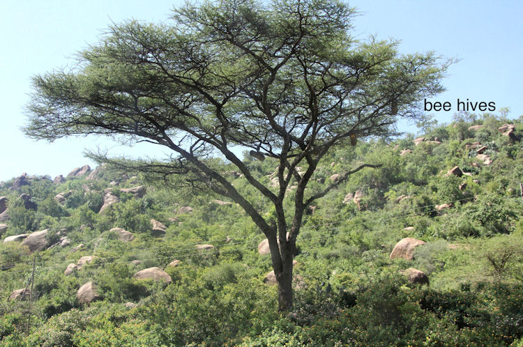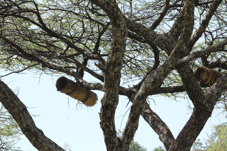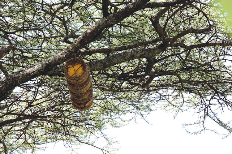 Bee Hives for honey in tree near Babile, Ethiopia.